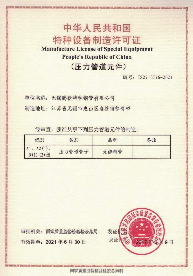 無錫騰躍特種鋼管有限公司創建于1987年,地處江蘇省無錫市惠山區洛社鎮。公司占地面積18萬平方米,現有員工350人,是一家專業生產不銹鋼無縫管的企業,年產能5萬噸。主要規格:外徑6~630mm、壁厚0.7~40mm。主要材質:奧氏體、奧氏體-鐵素體、鎳基合金等。 公司是中石化、中石油、中海油、核電的供應商網絡成員單位,是江蘇省AAA級信用單位。公司先后通過ISO9001質量管理體...