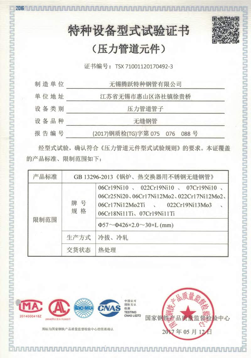 無錫騰躍特種鋼管有限公司創(chuàng)建于1987年,地處江蘇省無錫市惠山區(qū)洛社鎮(zhèn)。公司占地面積18萬平方米,現(xiàn)有員工350人,是一家專業(yè)生產不銹鋼無縫管的企業(yè),年產能5萬噸。主要規(guī)格:外徑6~630mm、壁厚0.7~40mm。主要材質:奧氏體、奧氏體-鐵素體、鎳基合金等。 公司是中石化、中石油、中海油、核電的供應商網(wǎng)絡成員單位,是江蘇省AAA級信用單位。公司先后通過ISO9001質量管理體...