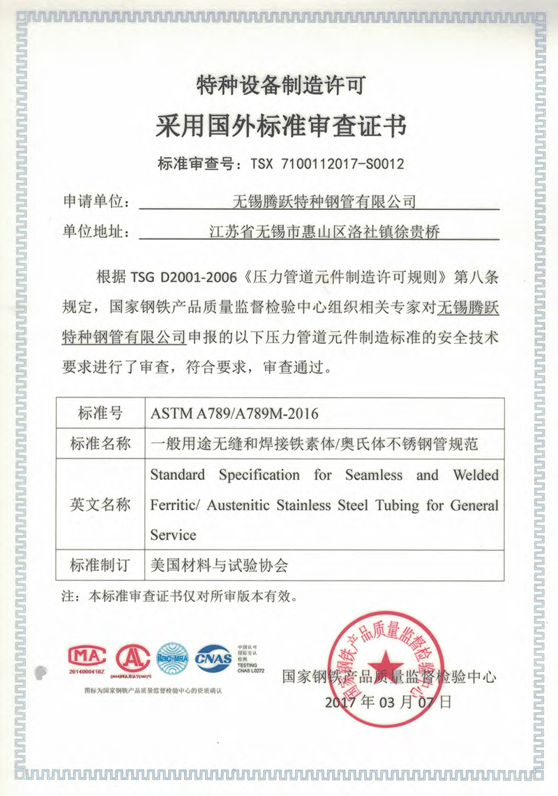 無錫騰躍特種鋼管有限公司創(chuàng)建于1987年,地處江蘇省無錫市惠山區(qū)洛社鎮(zhèn)。公司占地面積18萬平方米,現(xiàn)有員工350人,是一家專業(yè)生產(chǎn)不銹鋼無縫管的企業(yè),年產(chǎn)能5萬噸。主要規(guī)格:外徑6~630mm、壁厚0.7~40mm。主要材質(zhì):奧氏體、奧氏體-鐵素體、鎳基合金等。 公司是中石化、中石油、中海油、核電的供應(yīng)商網(wǎng)絡(luò)成員單位,是江蘇省AAA級信用單位。公司先后通過ISO9001質(zhì)量管理體...