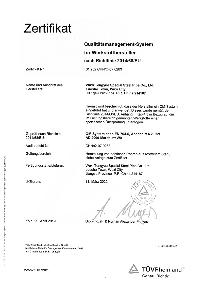 無錫騰躍特種鋼管有限公司創(chuàng)建于1987年,地處江蘇省無錫市惠山區(qū)洛社鎮(zhèn)。公司占地面積18萬平方米,現(xiàn)有員工350人,是一家專業(yè)生產(chǎn)不銹鋼無縫管的企業(yè),年產(chǎn)能5萬噸。主要規(guī)格:外徑6~630mm、壁厚0.7~40mm。主要材質:奧氏體、奧氏體-鐵素體、鎳基合金等。 公司是中石化、中石油、中海油、核電的供應商網(wǎng)絡成員單位,是江蘇省AAA級信用單位。公司先后通過ISO9001質量管理體...